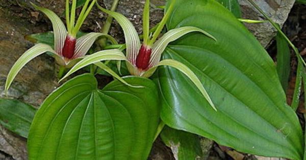 Cụm hoa mọc ở kẽ lá, cuống dài 2 – 4 cm, mang 1 - 2 hoa màu vàng lục; lá bắc hẹp; bao hoa gồm 4 mảnh giống nhau, hẹp ngang, dài khoảng 4 cm, mặt trong màu đỏ tía, có mùi hôi khó chịu; nhị 4 bằng nhau, chỉ nhị ngắn, đính ở gốc; bầu hình tháp.