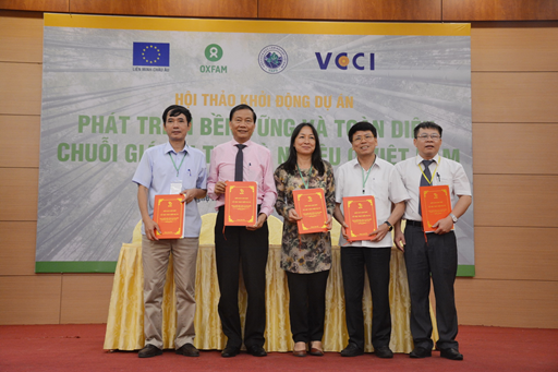 Đại diện VCCI, Oxfam và EU ký kết thỏa thuận hợp tác.